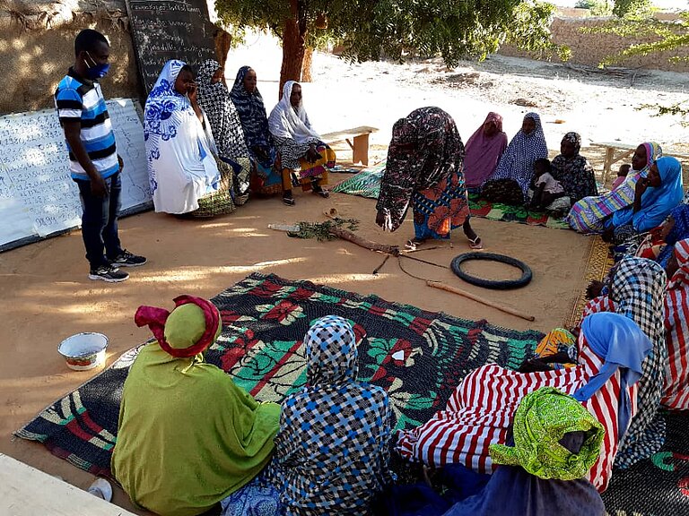 Ainsi grâce à l’outil REFLECT (arbre à problème), le groupement des femmes maraîchères a pu identifier les problèmes tels que le manque de compétences en matière de gestion du magasin, le manque d’outils de gestion, l’insuffisance d’organisation et l’analphabétisme des femmes. A cet effet, elles ont élaboré des pistes de solutions telles que l’amélioration de leurs compétences en écriture, lecture et calcul au sein du Cercle REFLECT, le renforcement de leurs capacités sur la tenue des outils simplifiés de gestion, et le commerce des produits maraichers en zone rurale.